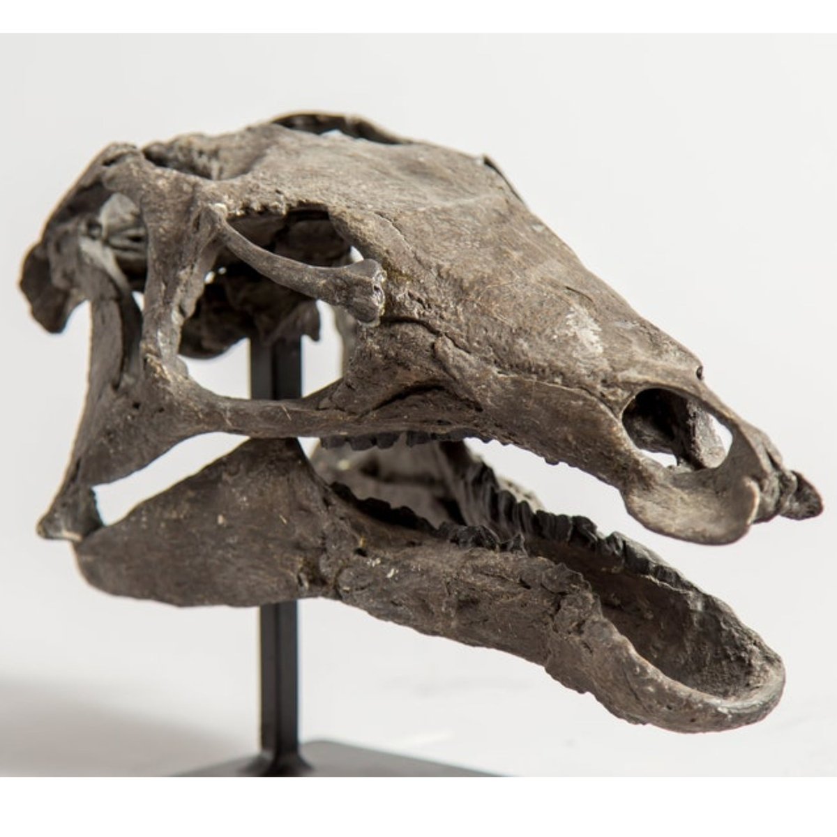 Camptosaurus holds a pivotal position in the evolutionary history of ornithopod dinosaurs. It is classified within the group Ankylopollexia, which includes Iguanodon and the hadrosaurs, characterized by a stiffened thumb spike. Camptosaurus itself represents a more basal, or primitive, member of this lineage compared to its Cretaceous relatives. It showcases an intermediate anatomy between earlier, smaller bipedal ornithopods like Dryosaurus and the later, larger, and more specialized iguanodontians. For instance, its skull is more robust than that of Dryosaurus but lacks the sophisticated dental batteries and pleurokinetic hinge (a flexible upper jaw) that allowed hadrosaurs to chew so effectively. Its hands, with their weight-bearing central digits and simple thumb spike, are a clear precursor to the more derived hands of Iguanodon, which featured a larger spike and more specialized fingers. By studying Camptosaurus, paleontologists can trace the gradual evolutionary trends within Ornithopoda, such as the increase in body size, the shift towards facultative quadrupedalism, and the refinement of feeding mechanisms that ultimately led to the extraordinary success of the duck-billed dinosaurs in the Cretaceous Period.